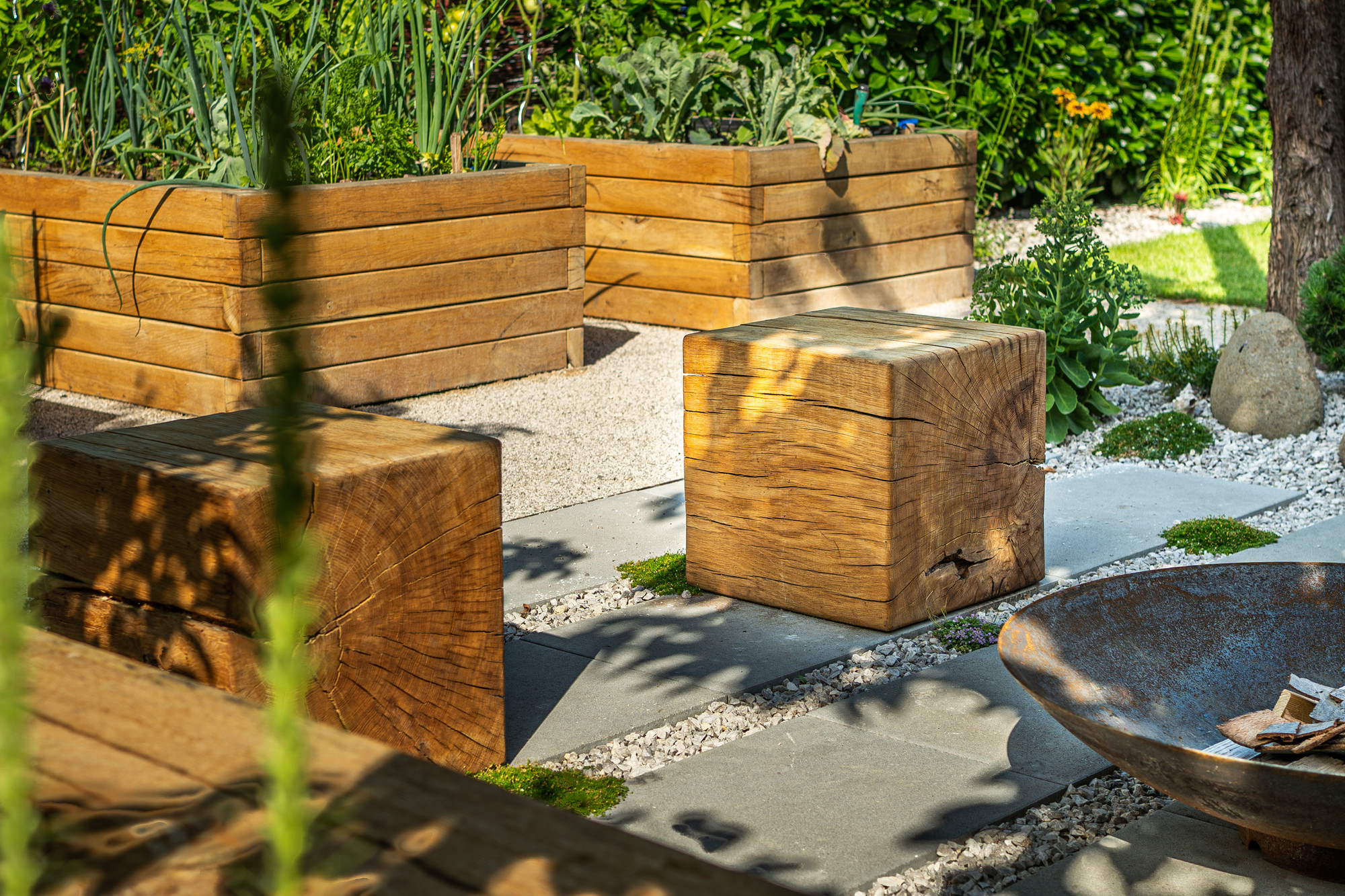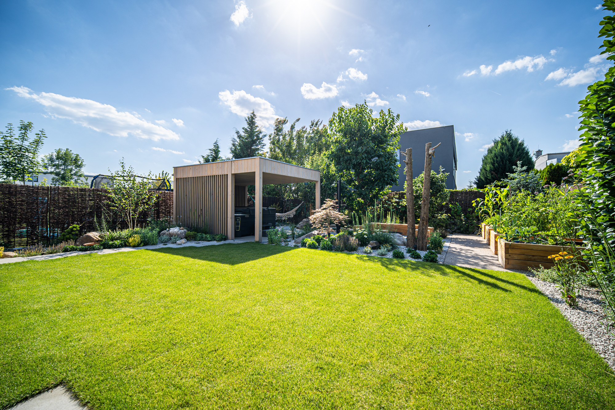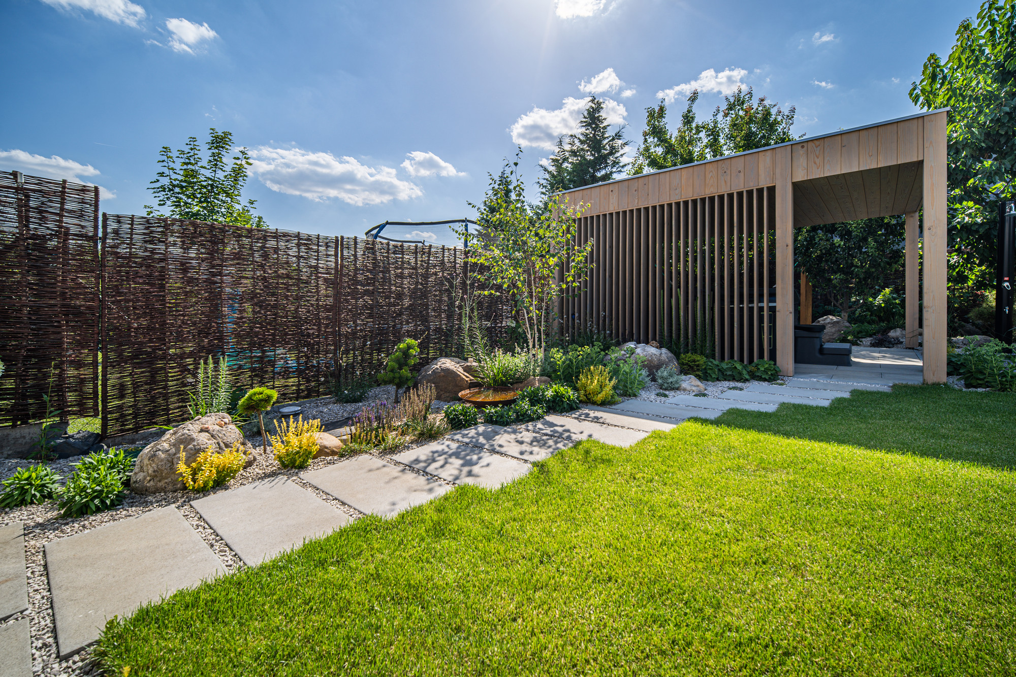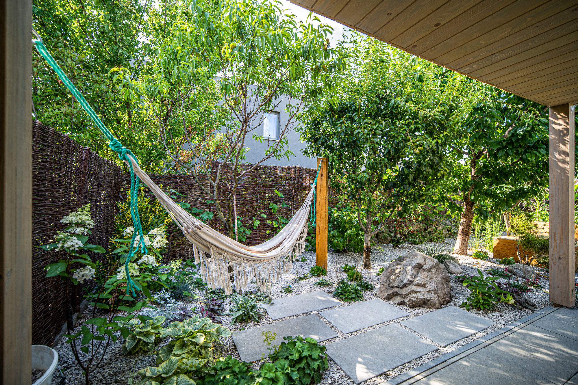 Záhrada ponúka oddych v drevenom altánku či v hojdacej sieti, miesto na stretnutie pri ohnisku, ale aj priestor na sebarealizáciu pri pestovaní zeleniny vo vyvýšených záhonoch. A v každom ročnom období svojou rozmanitosťou poteší zmysly.