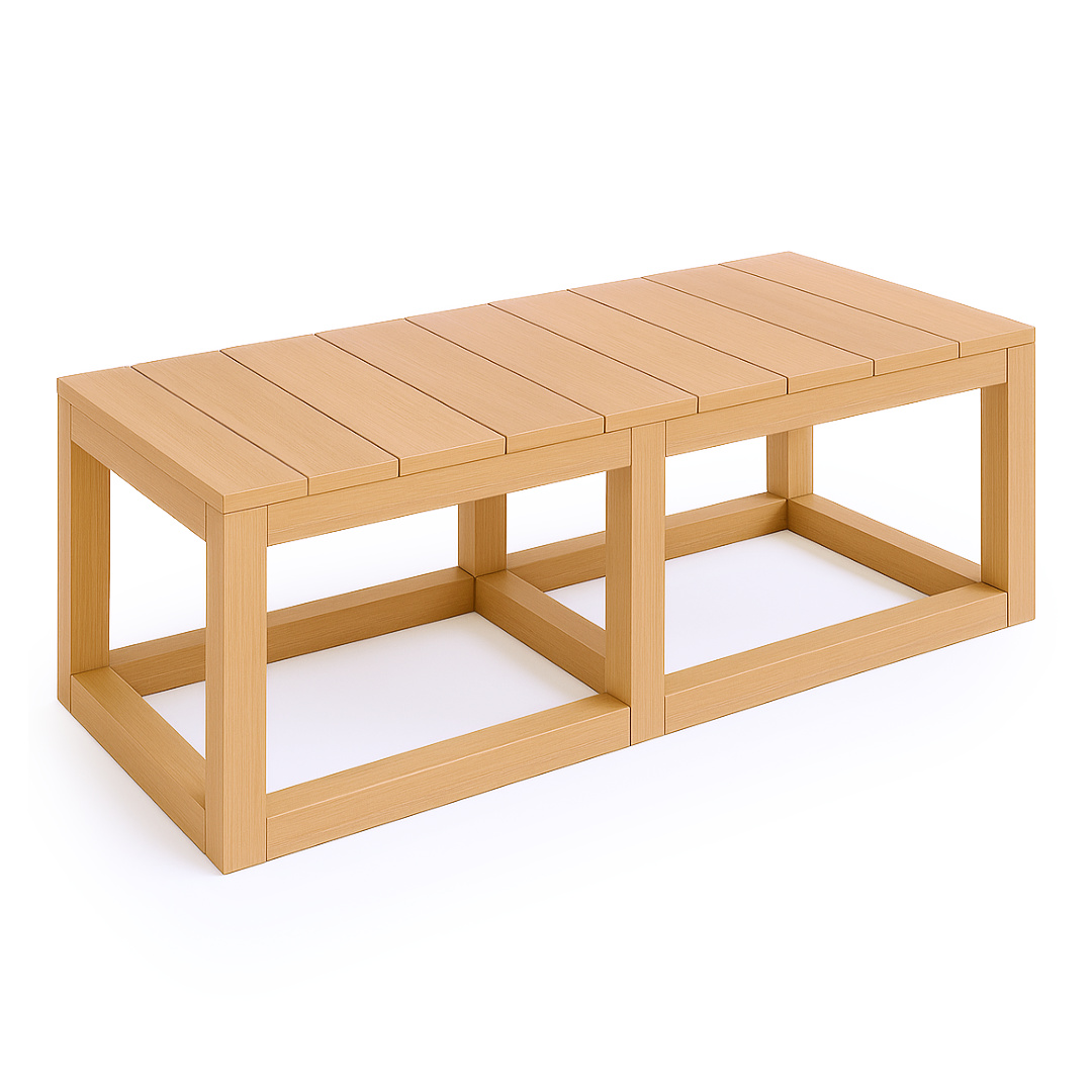 Minimalistická lavica z DUBOVÉHO dreva, vhodná do exteriéru.